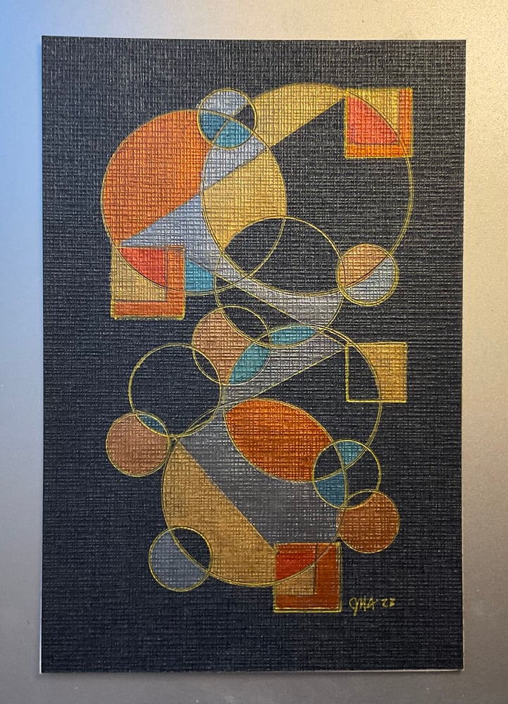 A 4” x 6” metallic watercolor Original Art postcard titled “ Sacred Geometry” unframed. FREE SHIPPING!